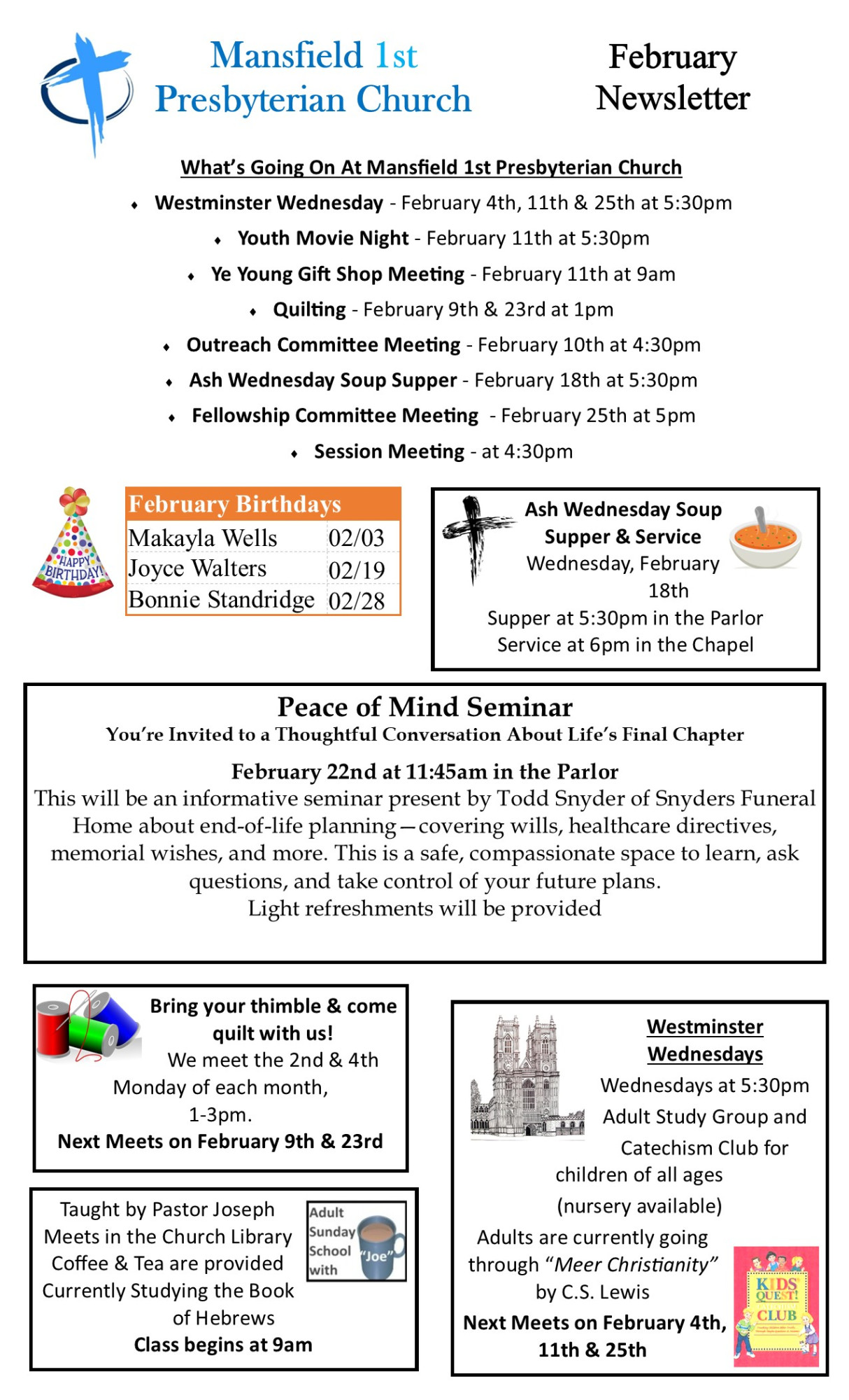 Everyone is welcome to any events held at Mansfield 1st Presbyterian Church
